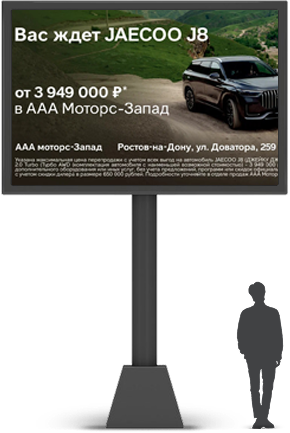 Это рекламный блокбастер под открытым небом. Он не мигает — он взрывает внимание. Его не скрыть — он захватывает взгляд.
